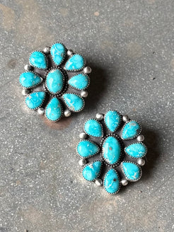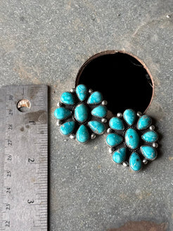 High grade white water turquoise set in fine and sterling silver. See photos for size. 1.5” in size.