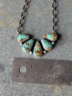 High grade #8 mine turquoise set in fine and sterling silver. Comes on a 18” sterling silver chain. See photos for si...