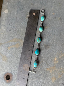 High grade kIndian turquoise set in fine and sterling silver. See photos for size.