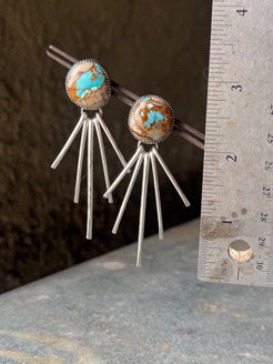 High grade Royston ribbon turquoise set in fine and sterling silver. See photos for size.
