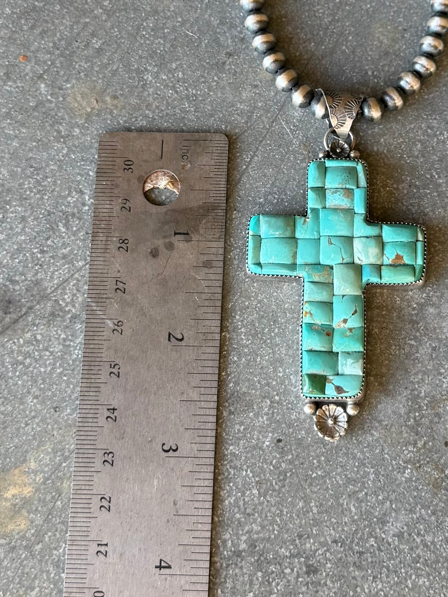 Kingman turquoise set in fine and sterling silver. Sold as pendant only. See photos for size.