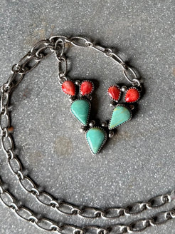 BAja turquoise and red spiny oyster shell set in fine and sterling silver. Comes on a sterling silver 18” chain. See ...