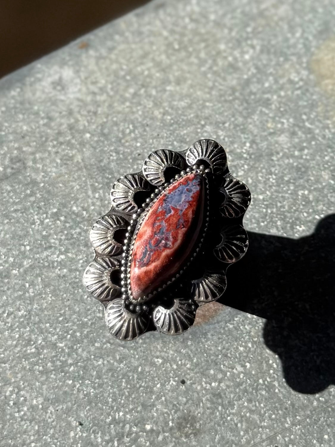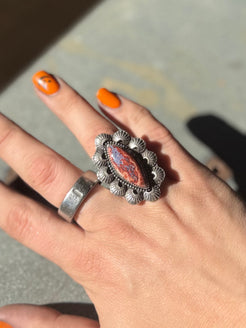 natural cantera fire opal set in fine and sterling silver set on a hand stamped sterling silver band. Size 9. Can’t b...