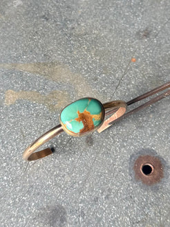 High grade Royston turquoise set in yellow gold filled wire with a sterling silver back. 5.5 inches not including the gap.