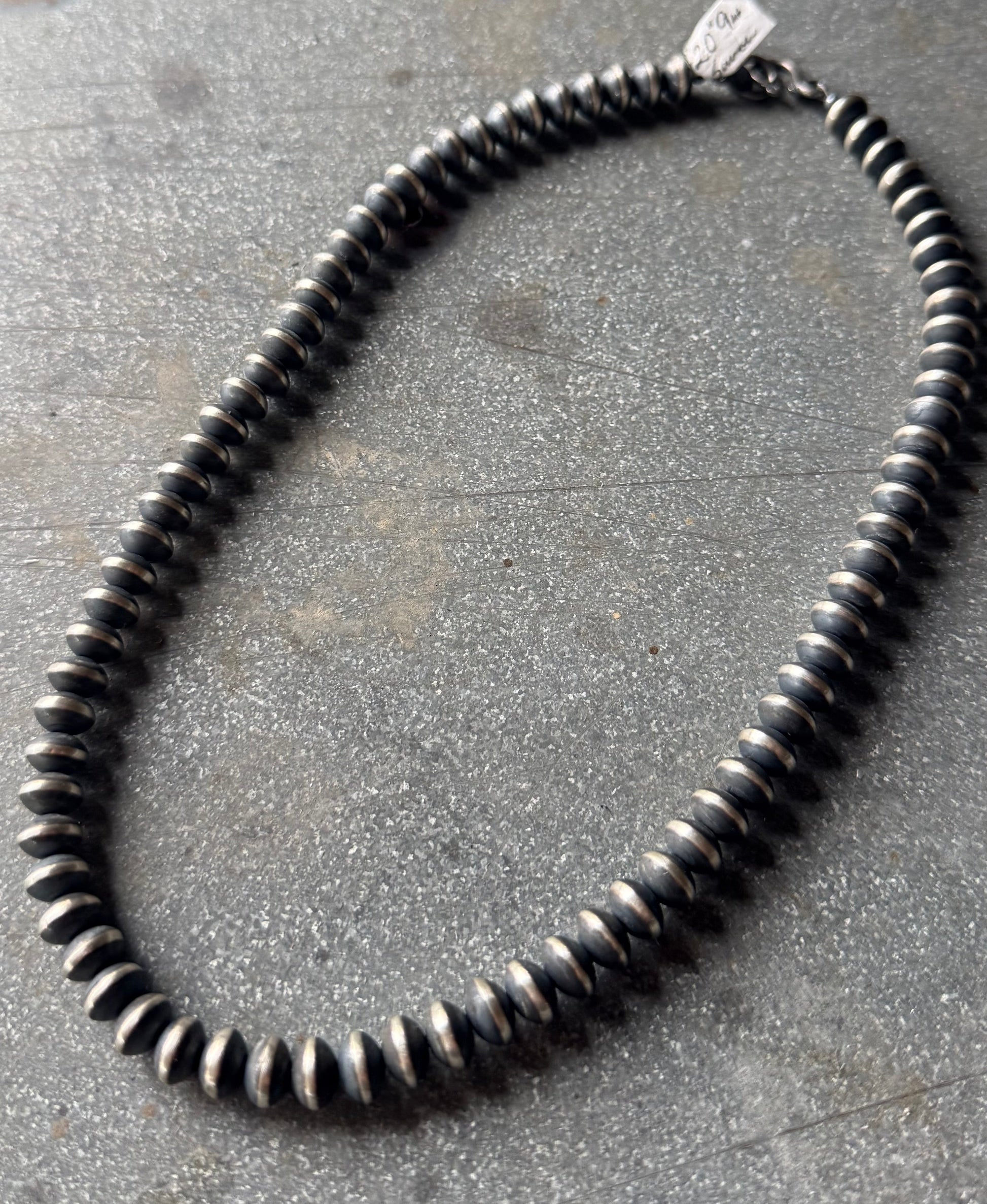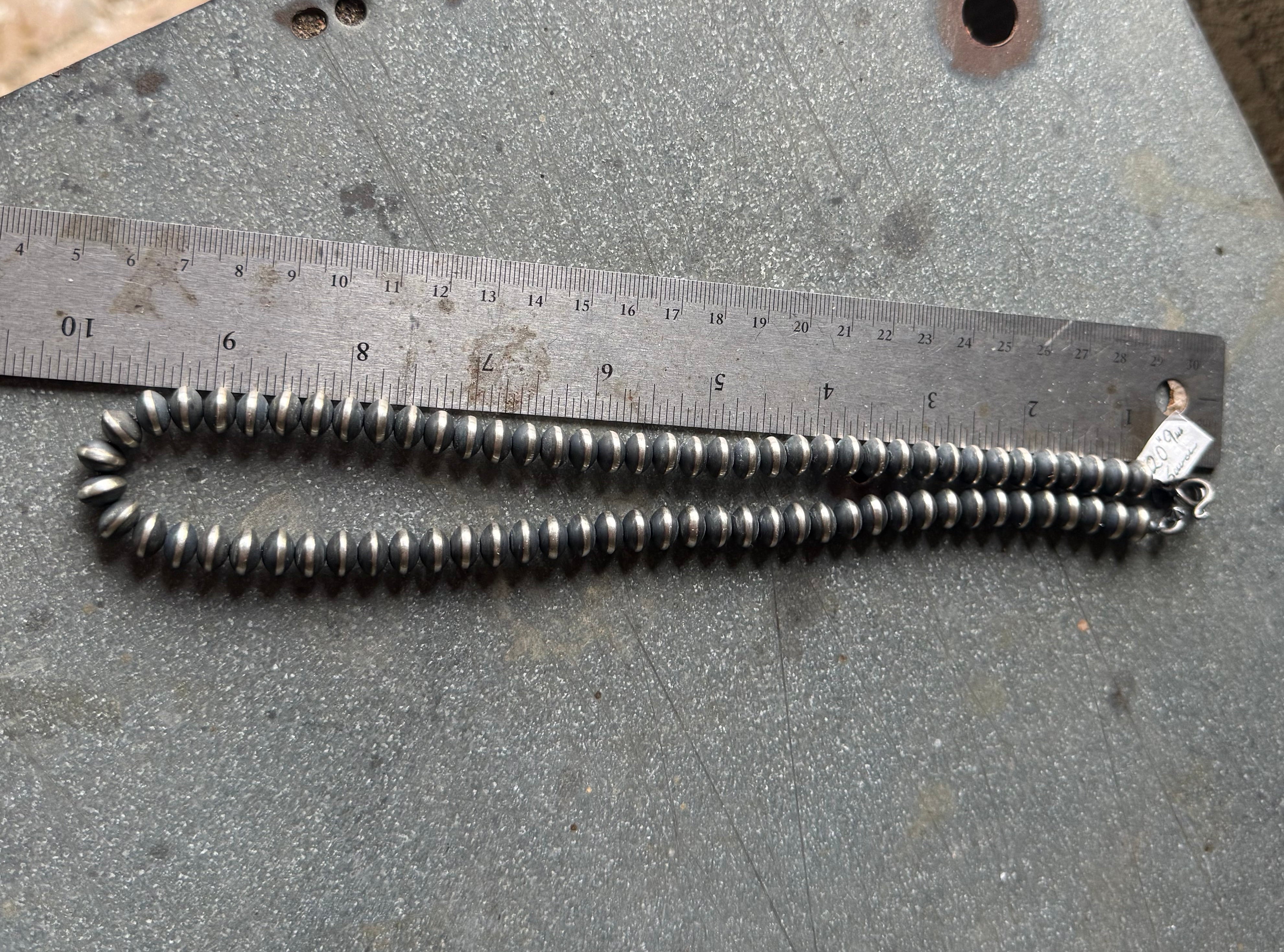 Every bead hand crafted navajo made. All sterling silver. 20” in length. 9Mm in size.