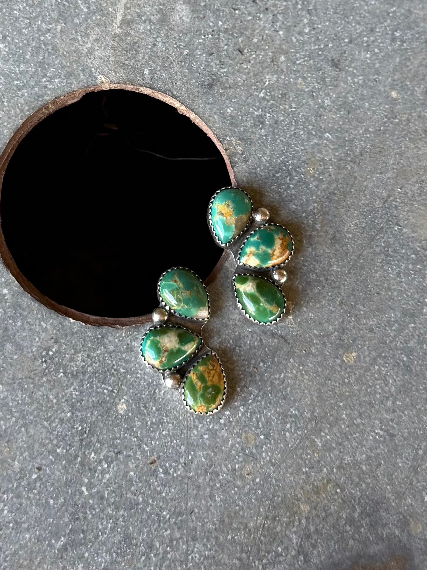 High grade Kingman turquoise set in fine and sterling silver. See photos for size.