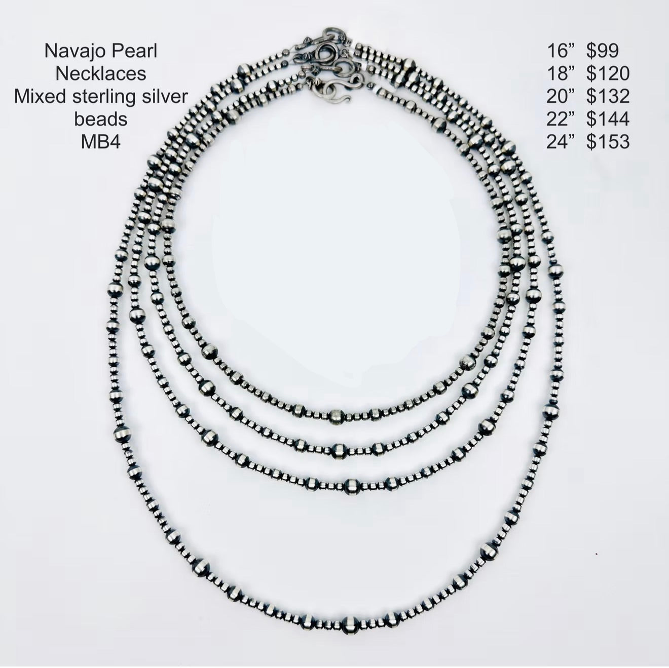 .925 sterling silver all handmade authentic Navajo Pearls in varied sizes. Select your desired length. great for layering with your favorite pendant