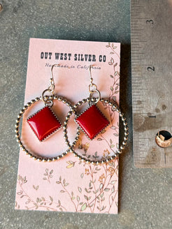 Red rosarita slag glass set in fine and sterling silver. Comes on sterling silver hooks with rubber backs. See photos...