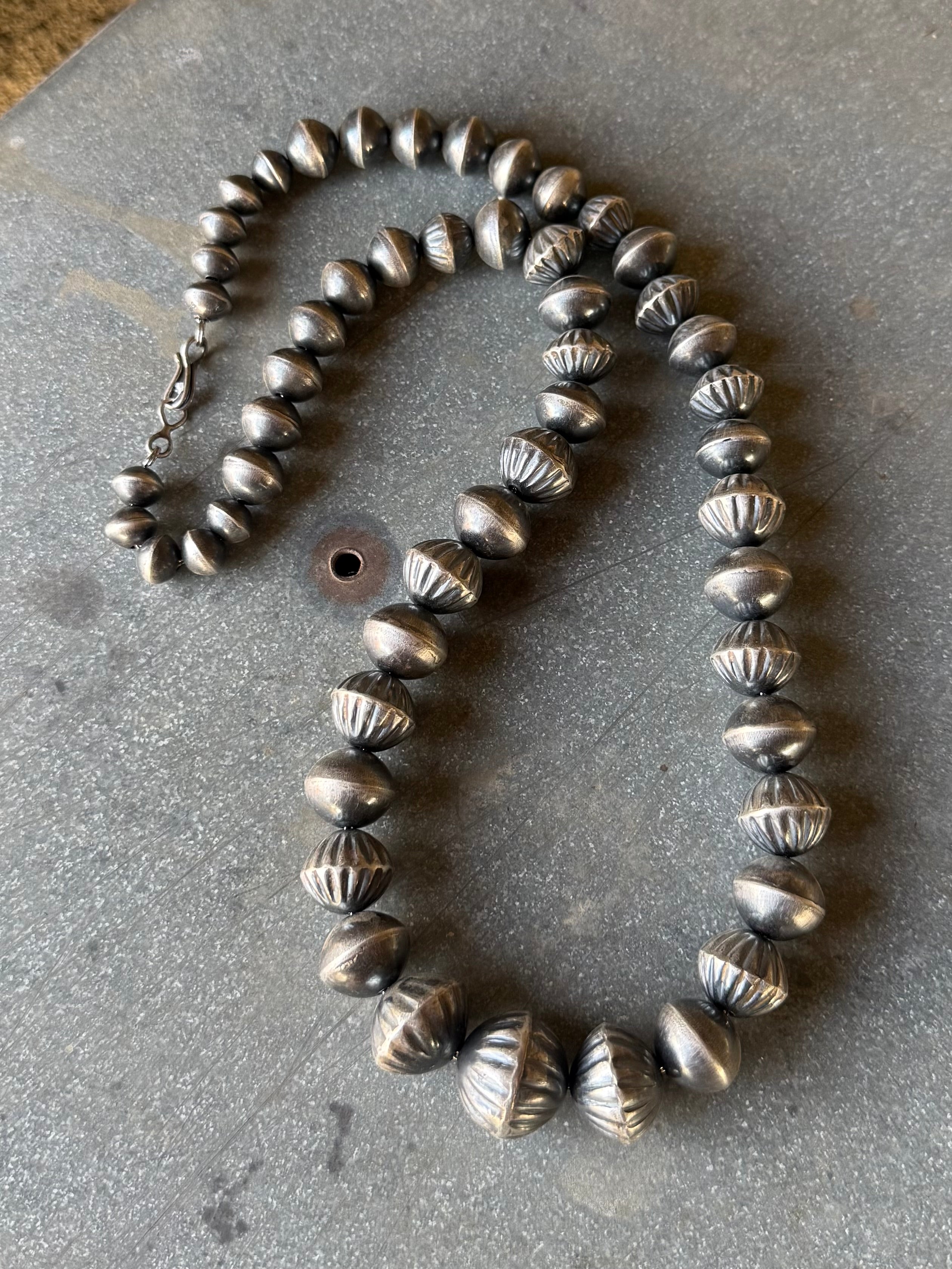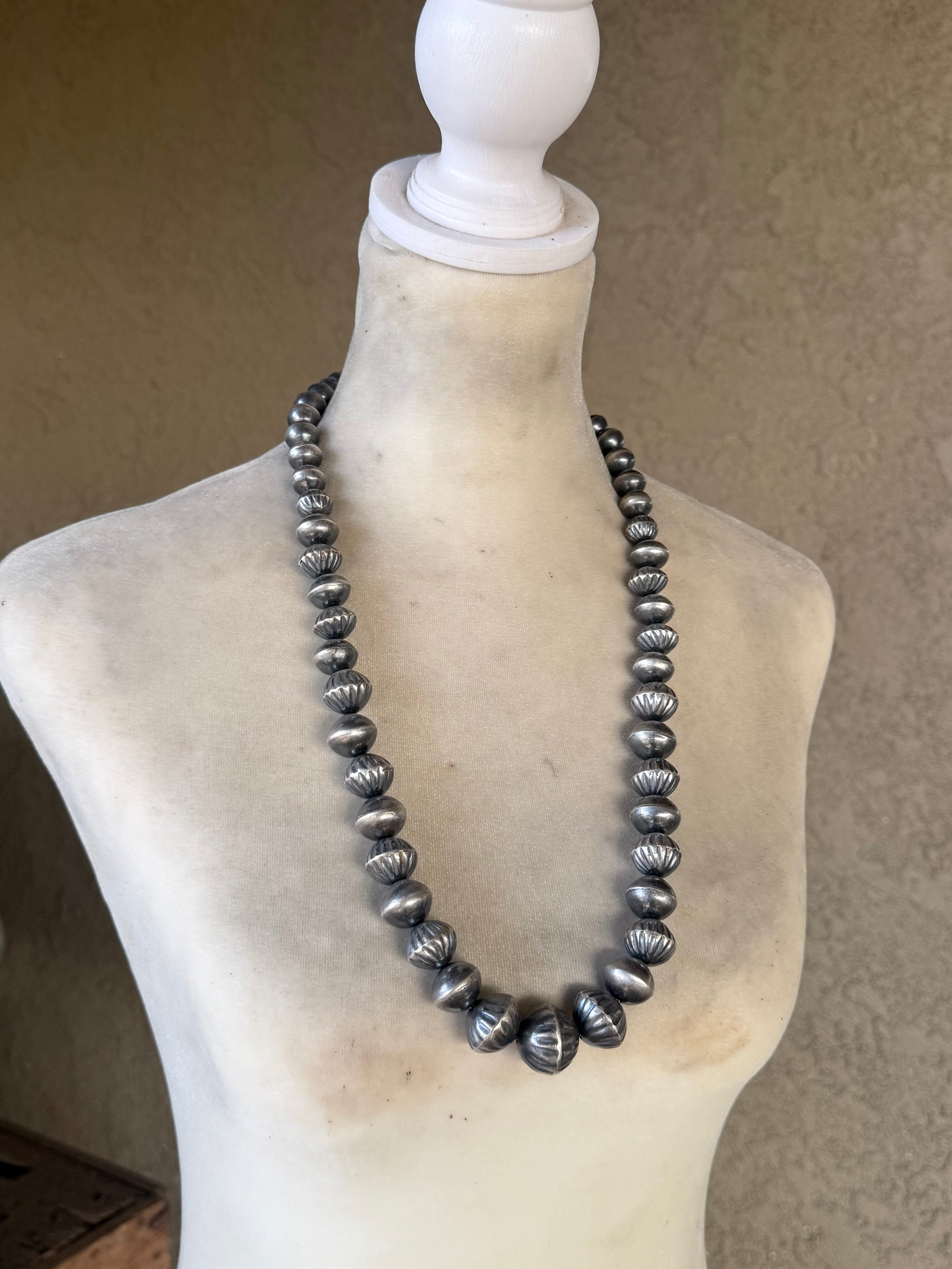 High grade handmade Virginia Tso crafted Navajo pearl strand 28”. Sighed “Tso”. All sterling silver