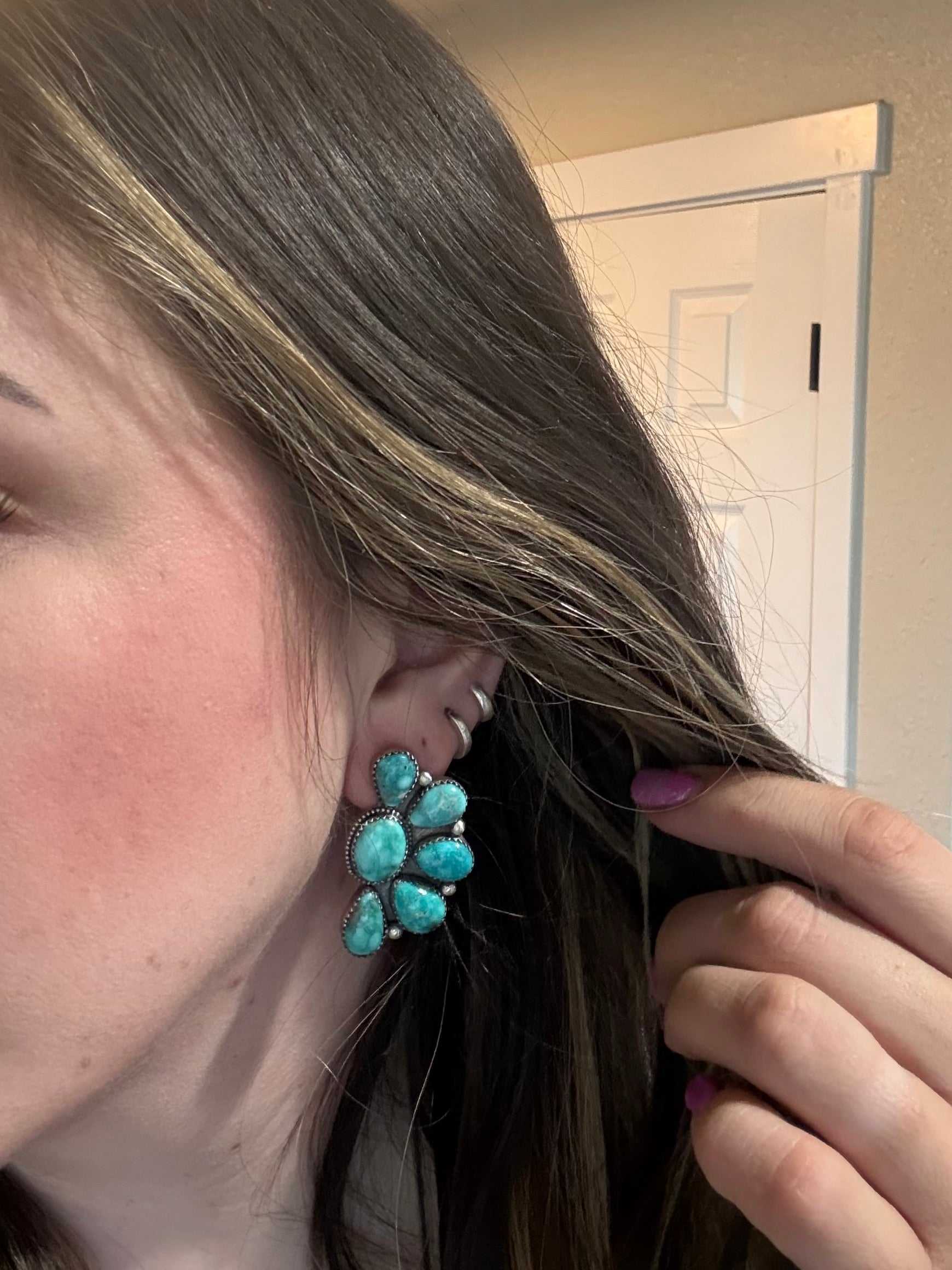 High grade white water turquoise set in fine and sterling silver. See photos for size.